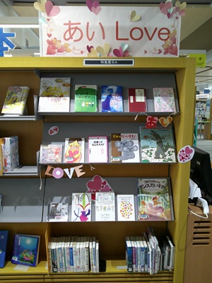 庄和図書館では「あいLove」と題し、たくさんの愛にあふれた作品を展示中です。