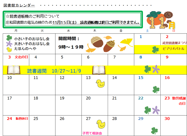 【日時】第4木曜日 えほんのへや実施前後の午前10時から12時頃まで